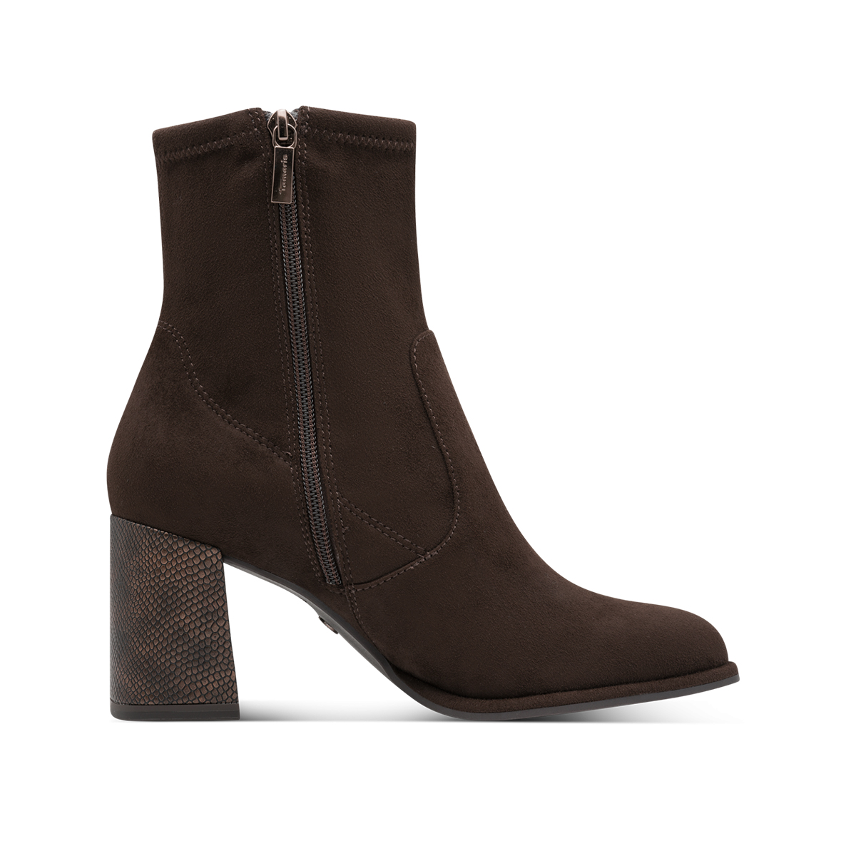 Γυναικεία μποτάκια Tamaris κατασκευασμένα από VEGAN υλικά εξαιρετικής ποιότητας. Διαθέτουν εσωτερικό φερμουάρ για εύκολη εφαρμογή. Ο εσωτερικός πάτος είναι ανατομικός, τεχνολογίας TOUCH IT και η σόλα τους είναι αντιολισθητική. Ύψος τακουνιού 7,5cm