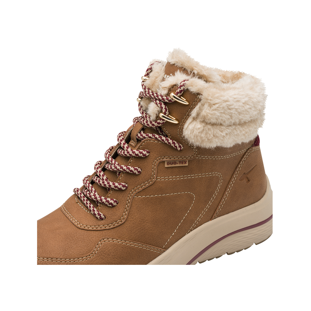 Γυναικεία μποτάκια Tamaris κατασκευασμένα από υλικά εξαιρετικής ποιότητας με τεχνολογία DUO-TEX. Διαθέτουν εσωτερικό φερμουάρ και κορδόνια για εύκολη εφαρμογή. Ο εσωτερικός πάτος είναι ανατομικός, τεχνολογίας TOUCH IT και η σόλα τους είναι αντιολισθητική. Ύψος σόλας 5,5cm